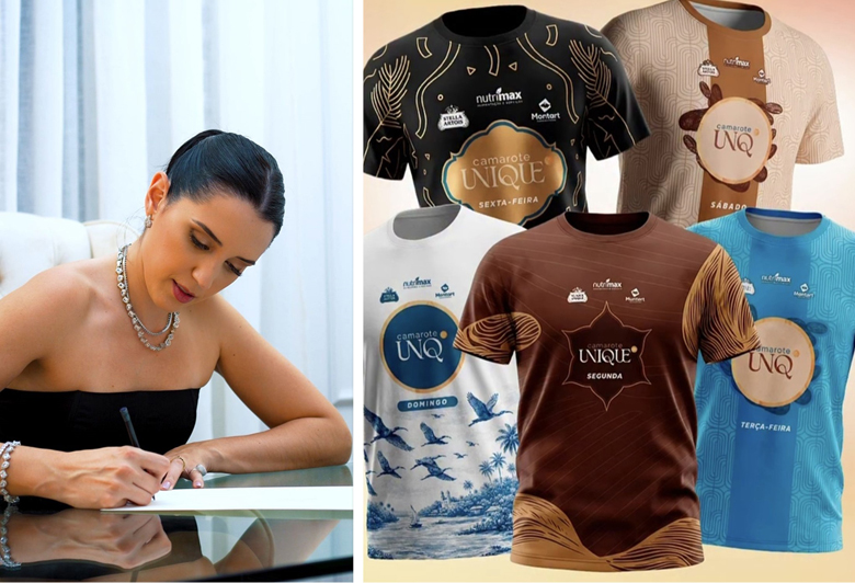 A estilista Nathalia Marques, referência em design de vestidos de noiva e moda festa, recebe diversos pedidos para personalizar abadás e, pensando em ajudar os foliões, reuniu algumas dicas alinhadas às principais tendências do Carnaval 2026.  Em São Luís, o Camarote Unique, do Circuito Vem Pro Mar, montou um ateliê na sua loja de venda no Rio Anil Shopping (Fotos/Divulgação)