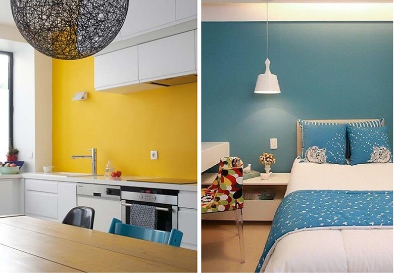 O amarelo foi a cor escolhida para um detalhe na parede da…