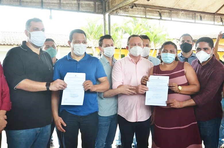 Ao lado do secretário Rodrigo Lago, Carlos Brandão assinou o termo de…
