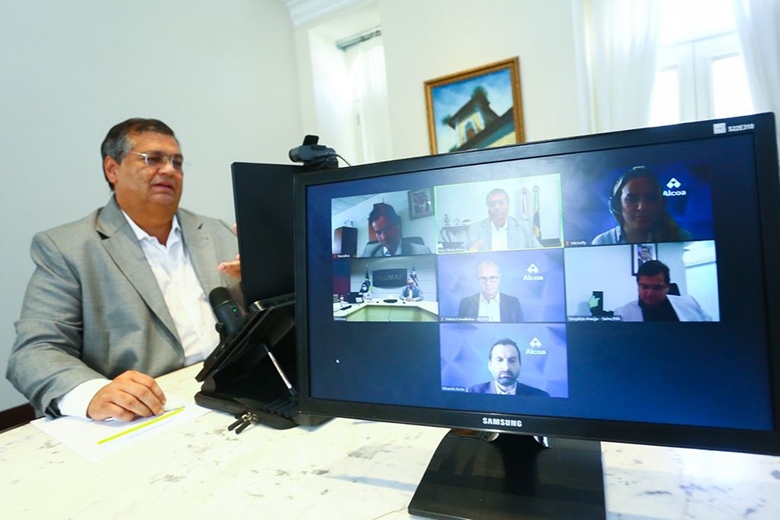 Governador Flávio Dino em reunião virtual com a Alcoa (Foto: Gilson Teixeira)…