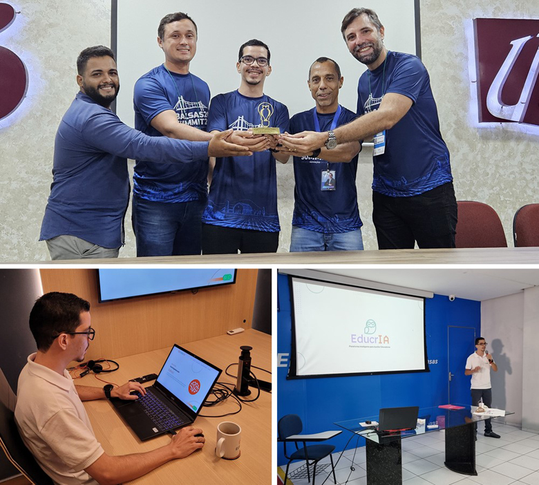 Jadson José Monteiro recebe o troféu do Prêmio João Berto de Inovação, durante o Balsas Summit 2025/A Eurekia já possui um espaço próprio e configura-se como laboratório de desenvolvimento de soluções para negócios da região/ O começo de tudo durante as apresentações dos pitches no encerramento do Cocreation Lab Balsas (Fotos/Divulgação)