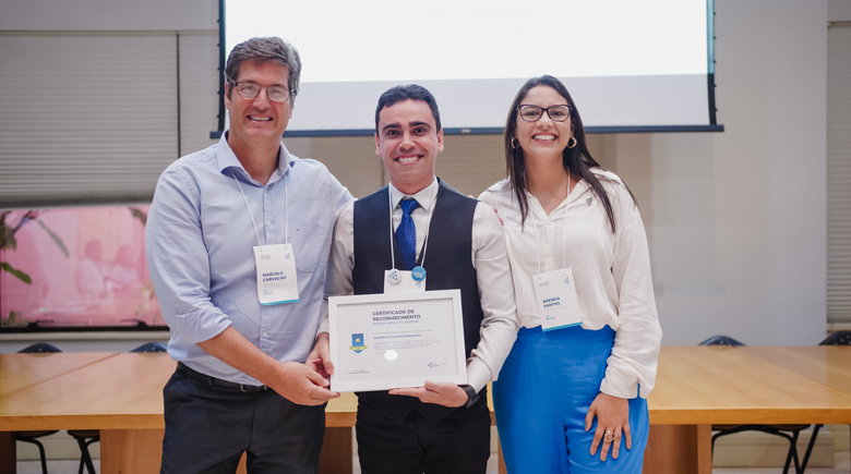 O diretor executivo da JA Maranhão, Saulo Nunes, com Marcelo de Carvalho (JA Brasil) e Brenda Santos (JA Brasil)