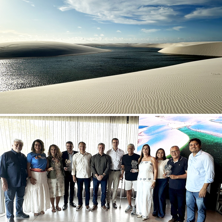 Durante a celebração, instituições parceiras e empreendedores dos três estados foram homenageados pelo trabalho dedicado ao fortalecimento da Rota das Emoções. No Maranhão, receberam o reconhecimento os empresários Cornélio Souza, Alfonso Leal e Virlene Camargo; a IGR Lençóis e Delta, representada por seu presidente Patrick Araújo; o ICMBio, por meio de Cristiane Figueiredo, chefe do Parque Nacional dos Lençóis Maranhenses; e a Secretaria de Estado do Turismo do Maranhão, representada por Ruan Tavares, secretário adjunto, em nome da secretária Socorro Araújo. As homenagens reforçaram o papel de cada instituição e liderança na construção e no fortalecimento contínuo do destino.