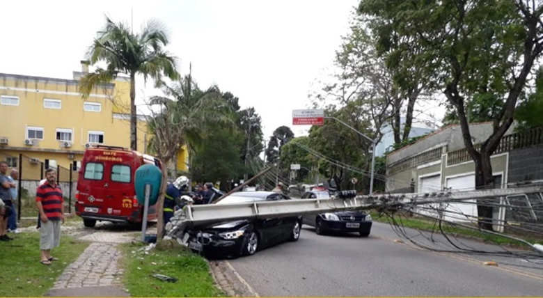 • Se o poste cair sobre o carro, a orientação é que a vítima permaneça dentro do veículo até a chegada do socorro e das equipes da Equatorial, que irão isolar a área e desligar a energia com segurança;